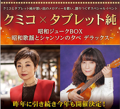 クミコとタブレット純が思い出のメロディーを歌い、語りつくすスペシャルイベント