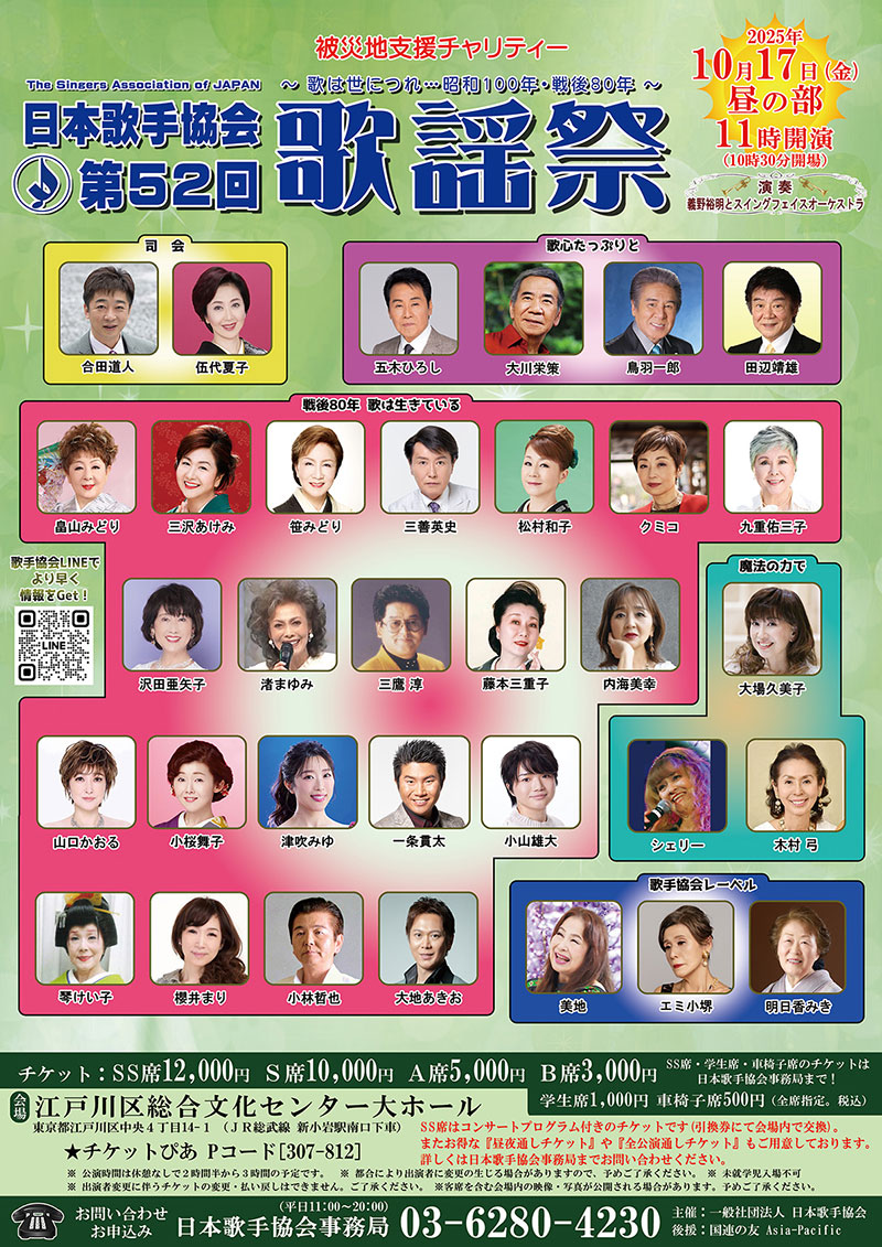 - 第52回歌謡祭 11:00〜 昼の部(江戸川総合文化センター 大ホール)